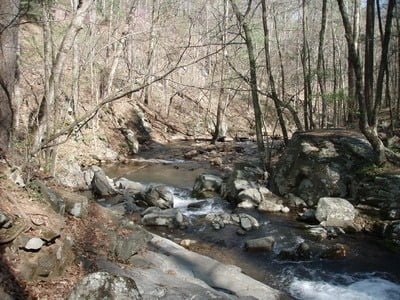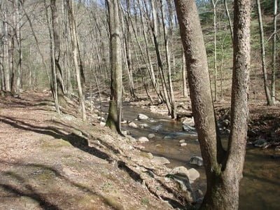 Getting There: From US 60 eastbound from Buena Vista, VA, turn right onto Panther Falls Road immediately after you cross under Skyline Drive. Follow it forever… 7 miles… it becomes FR 315. Turn right on Forest Road 311 and follow it to the creek. There is a way to get here from Skyline Drive, but it involves knowing where some unmarked dirt roads are.
