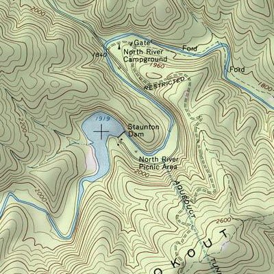 Getting There: Take S.R. 42 to the south end of Bridgewater, turn right just after the bridge, onto S.R. 727. Go west 3.3 miles to a “T” intersection with S.R. 613. Follow S.R. 727 to the left and go another 2.6 miles to the intersection with S.R. 730. Turn left onto S.R. 730 to Stokesville. At Stokesville, turn west onto S.R. 718 and continue one mile to the intersection with Forest Development Roads 95 and 101. Turn left onto FDR 95, follow past Todd Lake Campground; road is gravel from this point. Continue another 4.6 miles to the intersection with FDR 95B. Turn left and drive to campground.