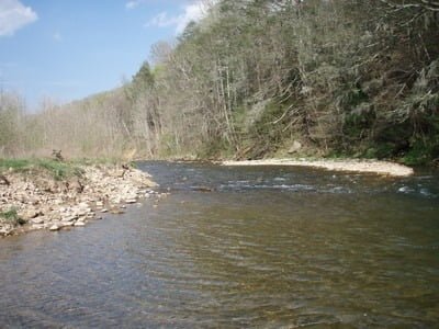 The section between Irish Creek and the town of Midvale looked the best to me. You can stop at any number of places, walk a little bit, and find some good pools and runs. In his book (Virginia Trout Streams), Harry Slone confirms this assessment based on his more extensive recon and practical experience with this water. He makes the point that folks will quickly write off this water as fished out – and make a mistake. While it is stocked, it’s big enough for the fish to disperse and not be held in one small pool, waiting for the predatory fisherman to swoop in and harvest all.