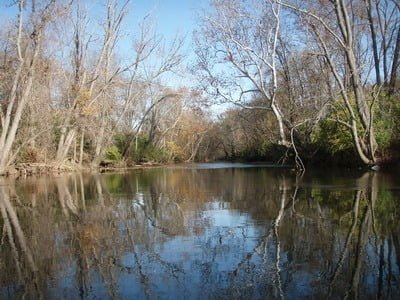 I drove out of town and found great access at the Hopeman Parkway bridge crossing. On the right, there’s a short dirt road that leads directly to the river and runs along it for about 100 yards. I was encouraged by the sign posted there cautioning against eating any fish caught out of the river. Hopefully, that indicated that there were fish here that someone would want to eat.