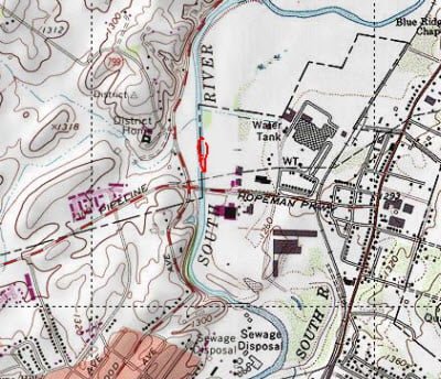 Getting There: From 340 in Waynesboro, turn onto the Hopeman Parkway. The access I found is to the east of the bridge.