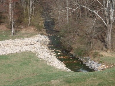 This is the start of the stocked trout stream in the Sherando complex. Note the green algae you can see even from high above the berm.