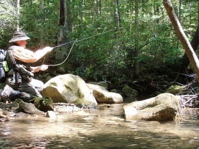 Getting There: Mapquest yourself to Warm Springs and head west on Route 39. There is a sign directing you to the Hidden Valley section (Rt 621). Turn right and follow 621 a mile or so to the next Forest Service sign that points you to the left. Go past the campground and continue on the road. It leads to the parking area. If you cross the river, you have gone too far. The parking area is well marked. The trail to the special reg section is at the far end of the parking lot – you will walk with the river on your left. Follow the trail and take the turn to Muddy Run.. or walk on to the first bridge and then start fishing up the stream.