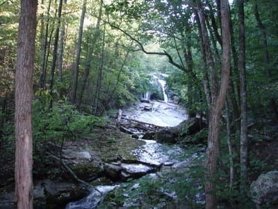 Rating comments: While I did not see anyone else on the Monday September afternoon I was there, this place must be hammered. Since I did not see any trout, I’m guessing that the pressure exists. If you believe the trophy discussion, there should be fish up to 16″ in here. Again, unless they are hugging the bottom of the deeper pools out of sight, no evidence (Granted, that’s where they would be). The trail is steep, so it is best left to folks who are in shape. If you have trouble getting up stairs, either take your time or fish the lower section by the gravel road. The total vertical gain was 396 feet on the route I took; 2 miles total.