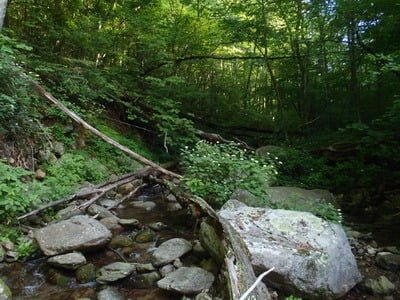 Given the proximity of the Conway to the Rapidan, it is logical to make a comparison between the two. The Rapidan has more water and more rocks creating a more dramatic stream structure. The Conway, on the other hand, is tighter and packed with more vegetation. While it maintains the typical rocky bottom that you would expect in the Blue Ridge, the river is narrower and shallower. In fact, I found myself spending more time walking than fishing. The runs between the infrequent pools are far too shallow to hold any decent fish. However, the pools, when found, are deep and hold a vibrant community of trout. One caution if you are fishing the upper Conway is that the river drops away from the road quickly. The road climbs the high ridgeline; putting a significant vertical distance between it and the water. Therefore, as you fish upstream, you need to be aware of where you are and how far you are from the road. By paying close attention to the map, I fished up river until it was reasonably close the road so I could climb up only a short distance on the very steep hill. There was more water upstream from where I quit, but it was starting to get fairly skinny so I gave up at the point noted on the map.