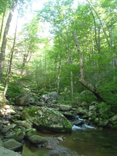 Last spring, I completed my exploration of the Conway River. I started my assessment several years ago when I was able to access the river from the lower boundary prior to that approach being closed for public access. Now the only way to get there is to run across the mountain, come down the hill and rejoin the river just upstream of where Devils Ditch meets the main flow. As described in other posts, once you skinny across the river, you can jump on the well marked, wide trail and walk as far downstream as you want. But I wasn’t here today to repeat that trip. Instead, I wanted to check out the upper headwaters.