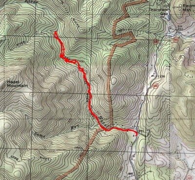 Each of those pools, and there were plenty of them, usually featured a deep 1 or 2 foot deep cut that sheltered the larger fish. Once I started to focus on the structure, I picked up some nice size brookies as you can see from the picture below. In fact, I even caught a nine incher – a Hazel River monster on a black gnat covered with a slight dusting of Frog’s Fanny floated next to a log. After fishing for a half mile, I noticed that the river took a dramatic upward pitch. There was a stark collection of large boulders with water gushing downstream. This had to be the Hazel Falls. The pool beneath that running water was deep. Given that, I decided to switch to a nymph to see if I could dredge anything up from the bottom. No luck. I’m sure I didn’t have enough line on but, I was anxious to continue to see what lay upstream, and fished my way through quickly.