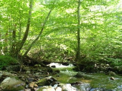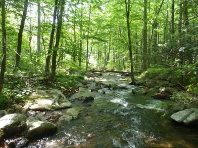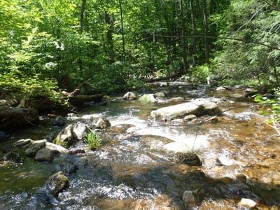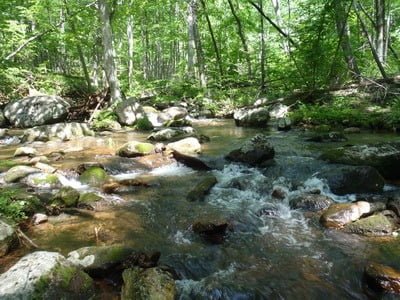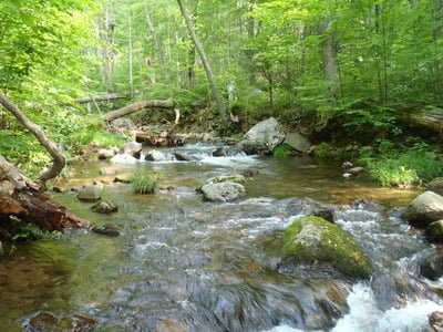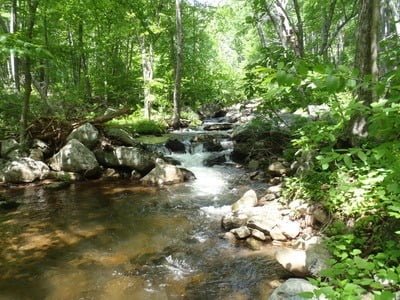 Once above the two-mile point, the water becomes low, and the deep fish-holding pools become scarce. The trail disappears as it moves away from the stream on either side to climb up the steep mountainside to take hikers all the way up to Skyline Drive. Anglers must be prepared for intense bushwhacking to move from place to place this far above the parking lot. There is no trail along the stream. To move farther upriver, be prepared to wind through the thick vegetation or stumble across the boulders in the stream channel.