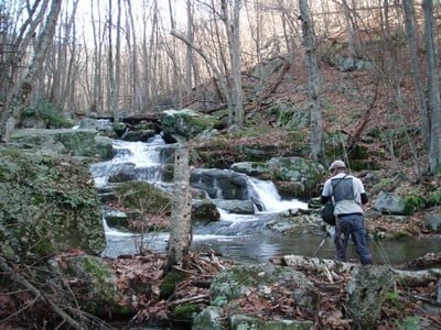 As we stumbled our way down the narrow, slippery trail in the damp morning, we couldn’t help but notice the sparkling water spilling over the tiny, pristine waterfalls of Hogcamp branch. From a previous visit, I knew that this trail was heavily traveled by hikers who enjoy the Rose River Loop. Did that mean that Hogcamp would be heavily fished?