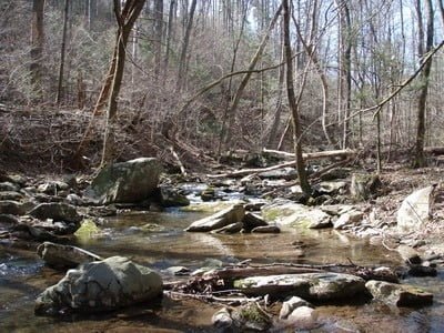 I woke up to blazing sunshine — a glorious early spring day made even more spectacular because I had the day off from work. When I combined that with the start-of-season urge to see new water, I pointed the truck south and headed towards the South Fork of the Moormans River. I had been cautioned about expecting too much by a reader. He pointed out that neither the South nor the North Fork had returned to their previous peaks of glory after the horrible storm that occurred in 1995. But the South Fork was on the VDGIF stocking plan and had seen a load of fish dumped a few weeks ago. So, what did I have to lose? At worst, it would be looking at pretty water on a glorious day. At best, there may be a stocker or two waiting to fall victim to my presentation.