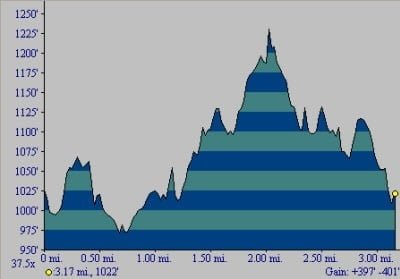 Elevation profile – total gain was 397 feet up the hill