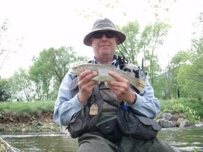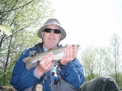 At this point, Doug rolled up in an ATV and we had a good chat about the upcoming to fly tournament that they were holding to generate donations for Project Healing Waters. Doug threw an experienced glance at my pitiful “new guy” box of nymphs and gave me some advice on what to use and when to switch to dry flies. One of the things that Doug said that was very interesting was that he had fished extensively in Montana. When there, he was frustrated by driving for an hour on dirt roads to the “great” streams only to hit the trailhead and encounter five or six other cars. His opinion was the fishing he provided on the Rose River was better. My only recent experience with western trout was in the Mount Shasta area of California with great luck on both the Pit and Upper Sacramento Rivers . Glad I did not go to Montana – it’s a lot cheaper to spend 75 bucks to enjoy this spot!