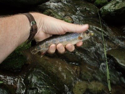 Will this rain never end? I am absolutely desperate to tie into some smallies on any of the great rivers in this part of Virginia. But this weekend, that was not to be due to the spike in rainfall. When I checked in with Lon, he reported that both the Rapidan and Rappahannock rivers were running way over the safe level for wading and were unfishable due to the heavy load of silt each river carried downstream. What to do? Head to the mountains!