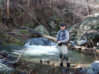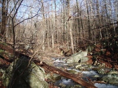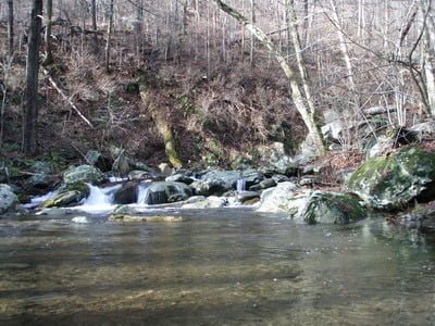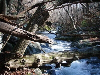 The trail down to the Rose parallels Hogcamp Branch until it joins with the Rose approximately 2 miles from the trailhead. We walked by a small group of campers perched on the ridge that separated the Rose from the Hogcamp. These folks must’ve been hardy souls because it must have dipped into the 30s the night before. As is typical of my experience fishing in the Shenandoah, there were no fishing rods in evidence with these campers. In fact, I can count the times I have run into other anglers on one hand, and that includes many trips to the Hughes, White Oak Canyon, the lower Rose River, and others. The physical demands of moving anywhere away from the road can be significant, given the rough terrain of the Blue Ridge.