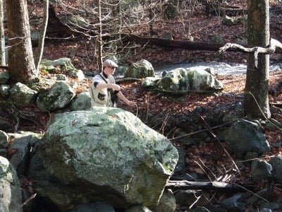 Patrick and I were both sensitive to the fact that the spawn had ended, and we were cautious about disturbing the redds. Therefore, we did not wear waders as the cold water constantly reminded us to stay high and dry, fishing perched on strategic rocks instead of wading in the stream. The Valley of the Rose this late in the year presents a stark contrast to the green wonderland you encounter in late spring or summer. There were no leaves on the trees and the brush had thinned. As it turns out, this was a great advantage since there is no trail paralleling the Rose once you move away from the Loop trail at the junction. With the oncoming winter pushing the brush back, it made it a lot easier to bushwhack our way down the river. It was well worth it!