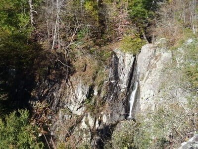 As soon as we set foot on the trail, the mantra that ran through my mind on the Doyles River hike begin looping back through my consciousness… “This is going to suck on the way back out.” The trail takes a precipitous drop down to the sharp cut that defines the South River streambed. From there, it parallels the skinny water up to an overlook that offers a spectacular view of the South River Falls. While we were initially discouraged by the skinny water along the trail, the Falls looked like it was full and vibrant as it dumped a torrent of water into a still pool at its base. At the same time, we anxiously peered over the lip of the rock wall that defined the overlook and realized that we had a long way to go to reach the river. In fact, it seemed far enough that parachute or a hang glider would be an appropriate way to get to the bottom.