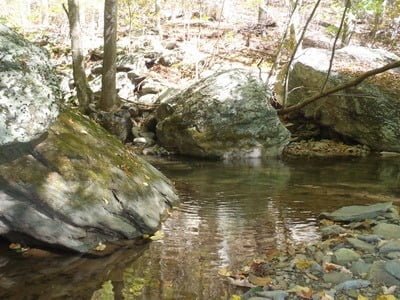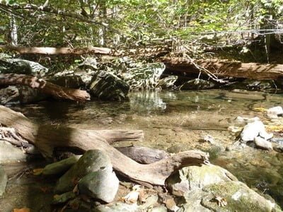 We continued to follow the trail from the overlook and it eventually joined the South River fire road. The road is wide and well maintained and made for easy walking down to the valley floor. When we finally reconnected with the river, we decided to move downstream instead of up since it appeared that the going would be a little bit easier and the terrain hinted of more pools and fishable runs. The trail picks up on the other side of the river but quickly disappears beyond the marked border that denotes the boundary between the Rapidan wildlife management area and the Shenandoah National Park. We pressed on, bushwhacking through the tangled brush until we got approximately 3/4 of a mile downstream from the junction. At that point, we split up and began fishing upstream.