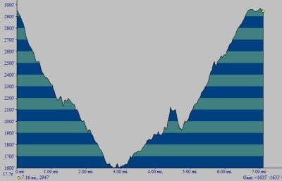 Lon I decided to call it a day at that point and began the long haul back out. The nominal length of the hike to the South River Falls and back is a little over 3.5 miles. In total, our trek spanned 7.1 miles and involved dealing with the loss and regain of elevation of 1635 feet. So, I guess doubling the length made us feel a little bit tougher, but I was still humbled to see the three ladies at the falls.