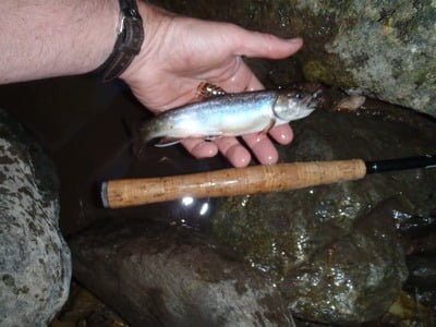 Decent 6 – 8″ brookies…. note that the Tenkara rod does not have a reel!