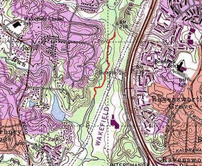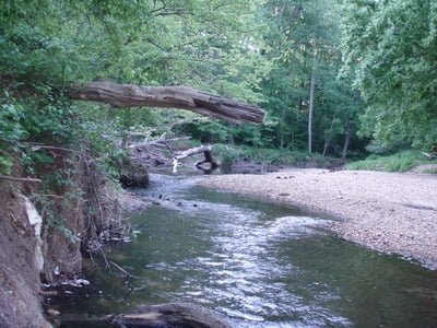 Getting there: Get off the beltway on to Braddock Road and turn right into the Wakefield Park facility. Drive down to the main complex and park there. I recommend you walk to the stream down the path that goes by the tennis courts at the northwest corner of the parking lot. You will get to the stream faster than if you just cut west and bushwhack.