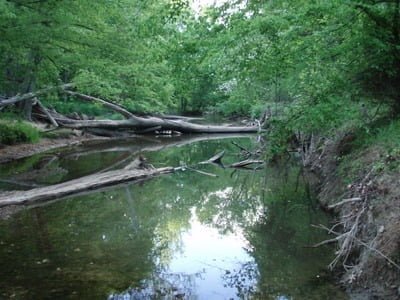 “The delayed harvest section of Accotink Creek extends from Route 236 (Little River Turnpike) downstream 1.9 miles to Route 620 (Braddock Road). …. The stream contains numerous riffle-run-pool sequences with good holding pools, and it has an abundance of large woody debris. “