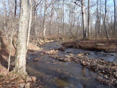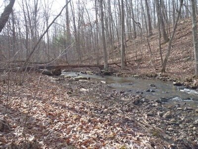 After checking out the southern end, I drove halfway back to the intersection and walked to the stream once again. I stopped at a campsite on a high ridgeline and skidded down to the stream from there. The water looked pretty good here as well.
