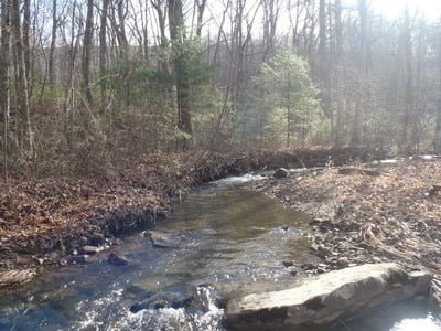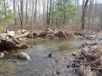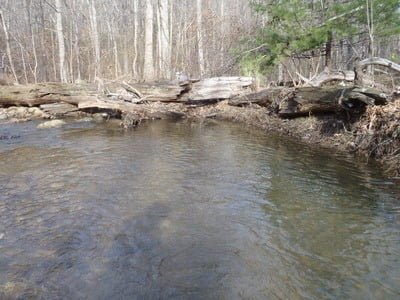 I drove the truck approximately 2 miles upstream from the intersection and walked down to the stream to assess the volume and quality of water. Since it was still in the middle of the spawning season, I was careful to remain on the bank as I walked in search of holes that would be deep enough to hold trout throughout the year. As you can see from the pictures, I found several. I did not see any evidence of full-grown brookies. I threw a few rocks in some of the pools to see if I could spark movement but did not see anything bigger than a few inches dash for safety.