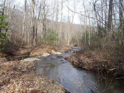 After fishing the stocked section, I was curious about the upstream water. Earlier, I had pulled in the appropriate background files from the fisheries people and the Eastern Brook Trout Venture into Google Earth and discovered that Paddy Run, upstream of the stocked section, was rated as water that would hold wild brook trout.