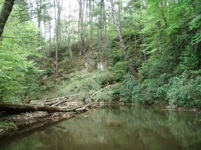 It’s about a mile to walk up to the dam from where you park your truck, and the hike is not really worth it. The stream is equally bad throughout the entire stretch. Clearly, this is just a shooting gallery for trout dumped from the stock truck, all condemned to die since they have no hope of survival – they are either caught or boiled as the water temp increases to an unacceptable level in the summer.