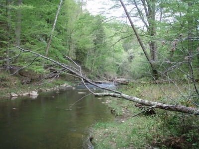 Bottom line on this place is that you need to go to the meat harvest that follows the stock truck if you want some trout. The stream will quickly warm up and they will die anyway. Do not expect any solitude or physical challenge associated with the trip. The walking in easy, the stream is level and does not have any trickly wading. The scenery is middle Virginia woodland – no dramatic waterfalls, rocky runs or places that would be good for nymphing. Expect to use dry flies or streamers on this body of water.