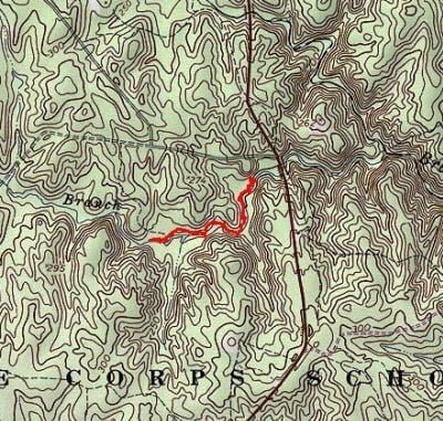 Getting There: Take the exit 148 off I95, go right. A few miles after the Marine checkpoint, turn right following the signs to Camp Upshur. Go past the turn for Breckinridge Lake and continue to the next intersection (Blackrock Road). It’s dirt. Turn left onto Blackrock and follow it around to the pool. The last 25 yards into the pool is steep and rutted. If you have a flatland car, park at the top of the hill and walk.