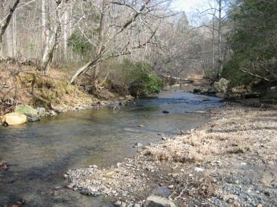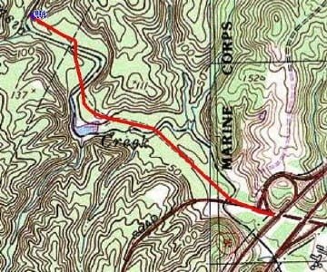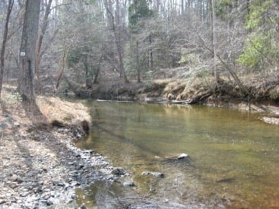We have driven by the Quantico trout stream many times enroute to our fishing hole at Breckinridge Reservior on the Quantico Marine Corps Base – but never stopped to check it out. After I noticed it was stocked recently, we pulled off to look at it on our way back from bass fishing last weekend (March 11). The stream is nothing special and it appears to be heavily used; although that could be attributed to the recent stocking.