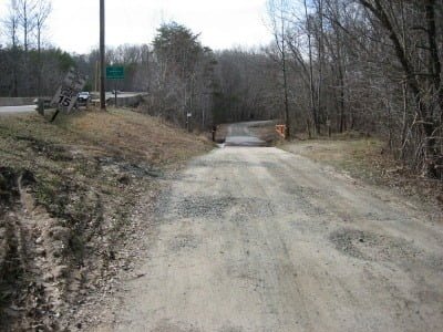 Looking down from the road. Turn down here and just follow the road – it parallels the creek