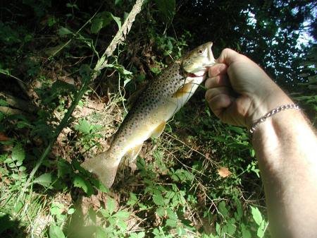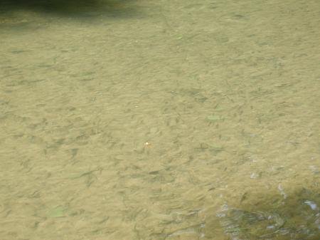 Every dot in this picture is a fingerling. This creek has thousands of fish – but few trophies that fell to our Panther-Martins