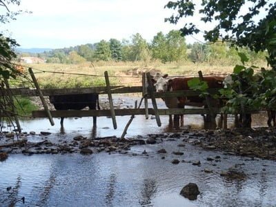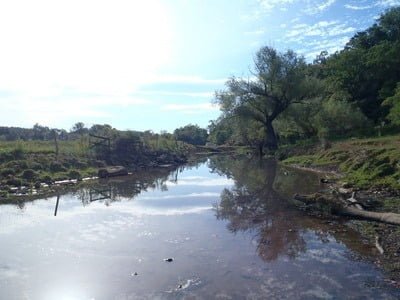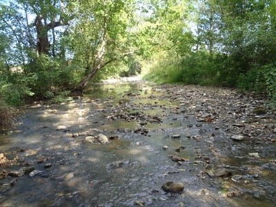 After being disappointed going downstream, I was encouraged by the look of the creek upstream of the bridge. Whereas downstream had been narrow and tight with plenty of obstructions, upstream it was wide and open as it ran alongside several fields. I accidentally “discovered” that the fence was electrified and resolved to remember that as I moved upstream.
