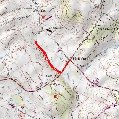 Getting There: From I-81, take exit 243 onto US 11 west. Turn left at S Main Street and follow it for 0.7 miles to turn right on Corporate Dr. Turn right on VA 701 (Pike Church Road) followed by a left on Mosby Road to stay on VA 701. Turn left on VA 42S followed by a right on Mason Street. Mason is VA 257 and turns into Ottobine Road. Follow it to the intersection with VA 613. The Ottobine Country Store is on the right.