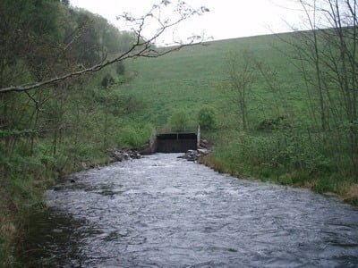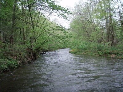 A quick drive up to Bear Creek, followed by a look at the Youghiogheny in Friendsville and the North Branch in Kitzmiller, confirmed my fate. This was a fishing weekend that was not meant to be. “But” I thought, “perhaps a Dam would protect the downstream flow and moderate it to a fishable level.” With that in mind, I drove to Barnum, hoping the Williams Jennings Dam would control the flow and allow me to salvage the weekend. As I pulled up to the top of the put-and-take area, I was instantly appalled at the dark brown chocolate that streamed in front of me. This was a loser as well. Did I have any other options? Desperately searching for additional options, I remembered that the Skidmore Fork of the Dry flowed out of the base of the Skidmore Dam. Since it was almost on the way home, that would be my solution: my last shot at a fish this weekend. I pointed the truck south into the light rain still falling to head through West Virginia. I would hit Route 33 on the other side of Franklin and follow it over to the Dry.