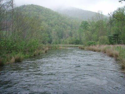 Getting There: From Harrisonburg, take Rt 33 west. After you pass the town of Rawley Springs, you are within a few miles of the turnoff and need to stay alert. The turn is an unmarked dirt road at the base of the mountain that marks the border between Virginia and West Virginia. You will probably miss it on your first pass. Once you recognize you are climbing the mountain, turn around and go back. The first dirt road to the west (right) that angles sharply back towards the mountain is the one you want. Follow it to the end and park in the wide parking area. The river is right in front of you.