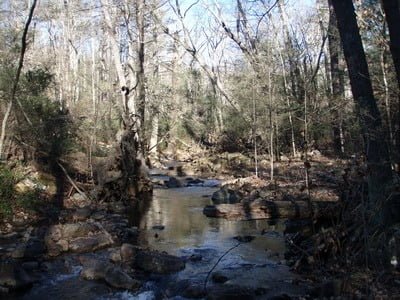 While I entered the creek where the banks widened out, they become high, steep and close as you move north. You will crawl around trees and over rocks to move upstream. While it’s easy to get out of the bed since there are plenty of foot and handholds, you are definitely channeled into the stream bed with no easy and quick way to move from spot to spot. If you decide to hike in here, there are two improved campsites that I ran across on the west side of the stream bed close to the parking lot.