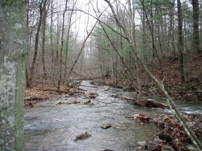 I hopped back in the truck and began to drive out of the area. On my way out, I took one last look down the steep hill that supports the road for the last half mile of the stocked section. Down deep in the woods, I saw a wide stretch that was marked with several deep looking holes. Now there was a dilemma! Clearly, these were out of range of the stock truck, but they did represent good trout water. Do I schlep down to check it out or do I give up? Given my experience so far, I realized that there was no way I would ever return here, so I decided to give it a shot and hope for the “fish dispersion” factor.