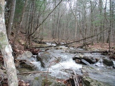 Upper Passage Creek is miles away from the end of the put-and-take section. It’s at the other end of the valley where Catback Mountain pushes Passage Creek to the west into Crisman Hollow. It’s not hard to find as you can see from the directions below. I was not that concerned when I saw some taillights in the distance as I turned off the hardball onto the dirt road that parallels the creek. However, my concern grew with each passing minute as I saw more and more vehicles. I drove all the way to the end of the stocked area, and there were vehicles at just about every turn-off. It took me a while to realize that most of these guys were not fishing. Many of them had dogs and were clearly engaged in hunting activities. It certainly made me glad that I had my blaze orange hat with me.