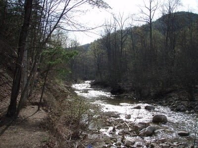 St. Mary’s river is a surprisingly strong push of water that runs out of the St. Mary’s Wilderness on the west side of the Blue Ridge. The other side of the ridge has good wild trout water that I will discuss in a future posting on Mills Creek. I didn’t really know what to expect when I finally found my way into the parking lot at the trailhead (pay attention to the tricky turn I discuss in the directions). In his book, Fly Fishing Virginia, Beau Beasley provides an excellent discussion of the St. Marys. Other than being a little bit confused on how to find the parking area, it’s an easy drive over from I-81.