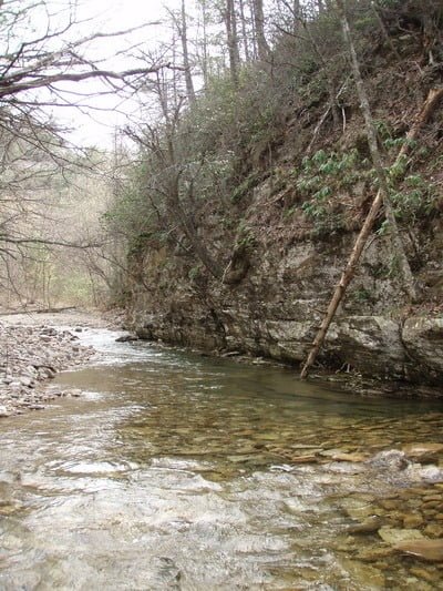 Probably the best way to fish this river is to backpack in and spend the night. If you do that, pay attention to the Forest Service guidance that requires you establish your campsite 150 feet away from the trail. As you walk up the narrow valley, you’ll appreciate what a challenge that could be since the sides of the steep hills form a sharp “V” with the river at the bottom. I suppose there must be some places where you can pitch a tent that would not be on a boulder field or they would not permit camping at all. Of course, the pessimists would argue that the regulation requiring the distance from the trail is only intended to hide the bodies of campers who have been eaten by the bears that are prolific in this area. That way, day fisherman and hikers will not have their day disrupted with a gruesome find.