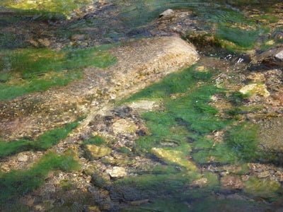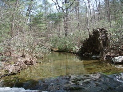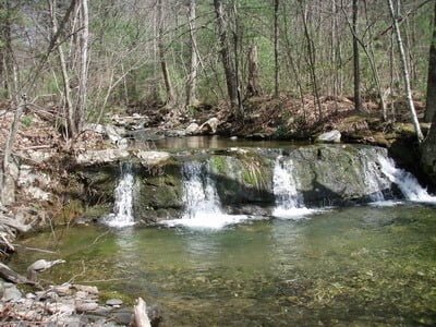 You should only gather your energy for the intense physical challenge for the hike next to Rocky Mountain Run as a trail leading to the ultimate goal of Big Run. Ignore the stream until you get to the second stream crossing. At that point and below, there is enough water in the stream to merit investigation. However, early in the year, there may be an algae bloom as you see in the pictures below. This will limit your ability to use nymphs and keep you on dry flies. Except for the one location beneath a small waterfall, there is no place I discovered in the stream where you could throw a spinner.