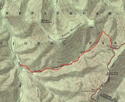 Several months ago, I discussed fishing Big Run in the Shenandoah National Park. Those of you who throw a trained eye on the route I took may conclude that fishing Rocky Mountain Run, either on the way in or on the way out, would be a good way to mitigate the stress and strain of the 10 mile hike.