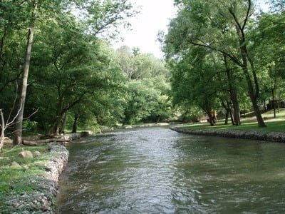 The Park is divided into two sections, with the dam providing the dividing line. The dam backs up a wide, deep lake with a broad spillway feeding the quickly running stream. Below the dam, the stream runs shallow through several channels and terminates at a deep hole immediately above the bridge. There is no wading in Devils Backbone Park. Actually, the “no wading” rule is fine since access from the bank is universal, and the stream is narrow enough to eliminate the need to get in the water. Below the bridge that supports Lappans Road, the creek runs into a “wild” area adjacent to the road that does not have this restriction associated with it.