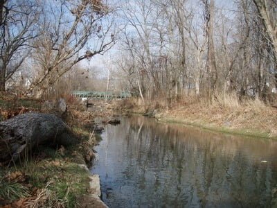 I fished down the stretch for another 30 minutes or so with no luck. The creek is fairly narrow in this section, but has deep runs that are marked by a few rocks poking up with breaks over riffles in some areas. Since it is in a housing area, the banks are manicured and it is not a problem to move from place to place – easy walking.