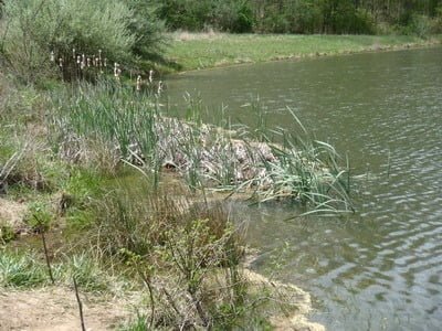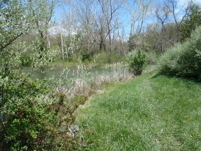 There is shallow water on the eastern and western sides and deep water along the northern edge. The pond remains relatively clear even after heavy rain. The greatest barrier to fishing is the thin ribbon of cattails growing adjacent to the shallow areas on the east and the west. Use them to determine where the shallower spots are. According to the information posted near the parking lot, gourmet cooks scour the landscape in this part of the wildlife management area for fresh, edible wild mushrooms.